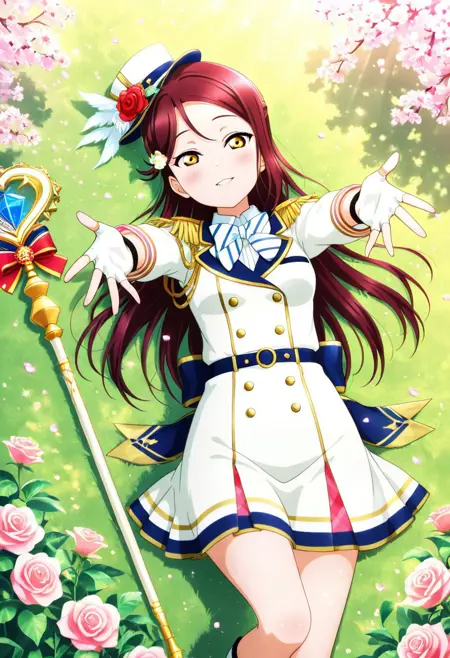 sakurauchi_riko,, love live!, 1girl, 黄色い目, 赤髪, 長い髪, 濃い赤髪, ヘアクリップ,