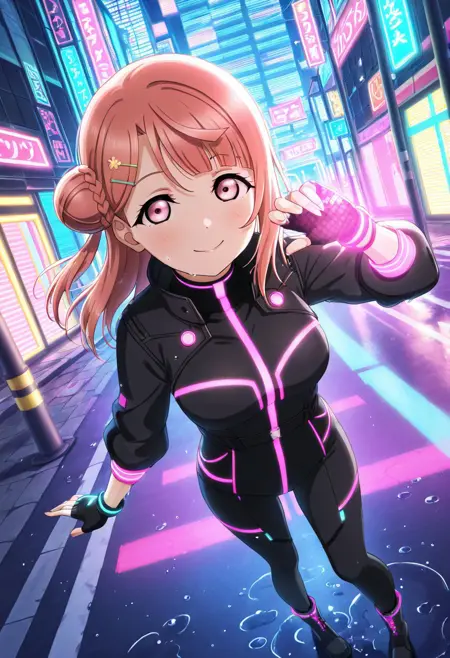 kurosawa_ruby,, love live!, 1girl, 緑の目, アクア色の目, 赤髪, 短い髪, 片側二つアップ