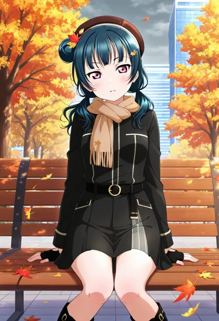 tsushima_yoshiko,, love live!, 1girl, 紫色の目, 長い髪, 青髪, 片側三つ編み, 片側結び,