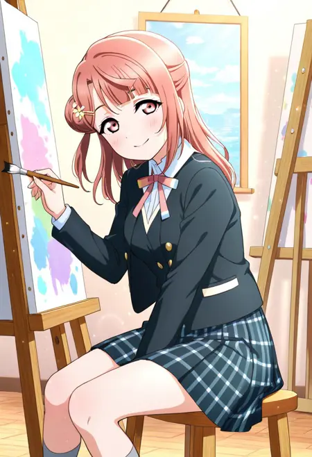 hanamaru,, love live!, 1girl, 黄色い目, 茶色い目, 茶髪, 長い髪, 大きな胸, 宇野星学園の制服