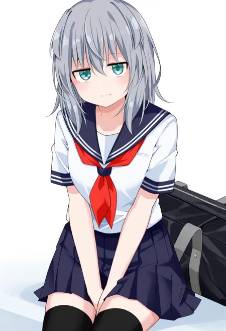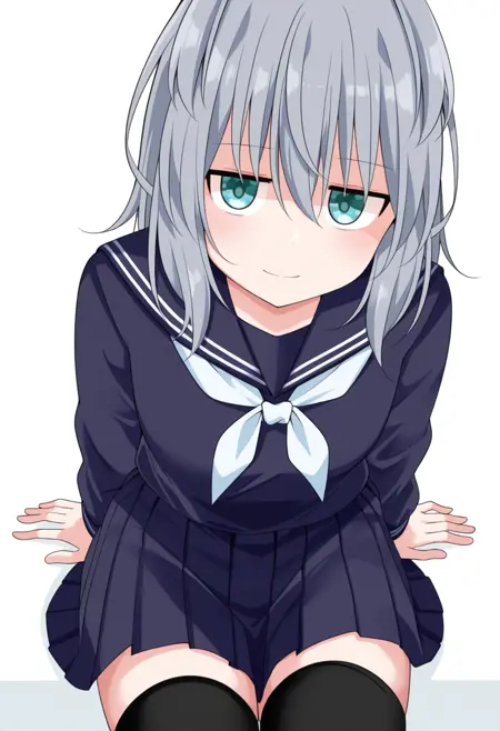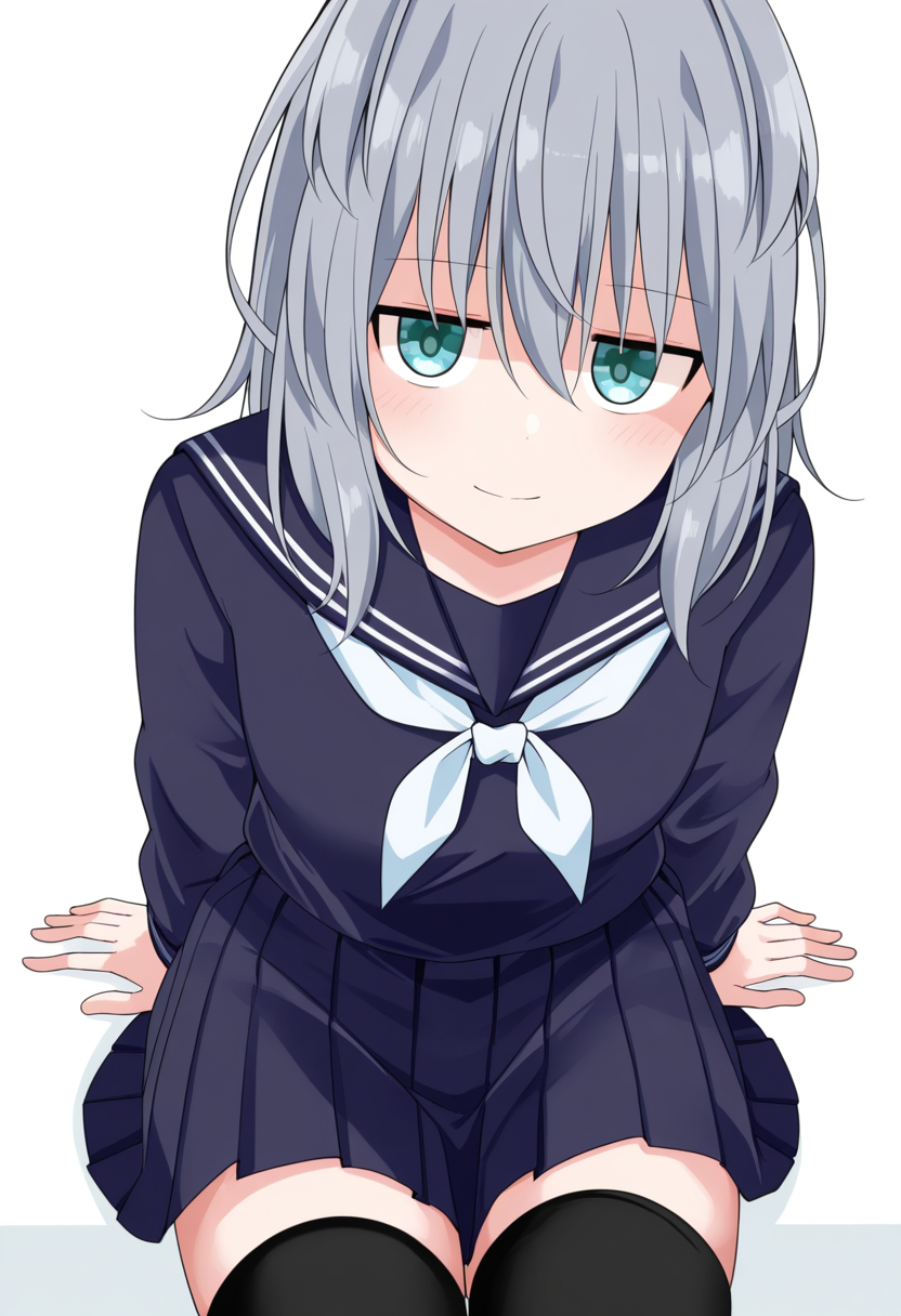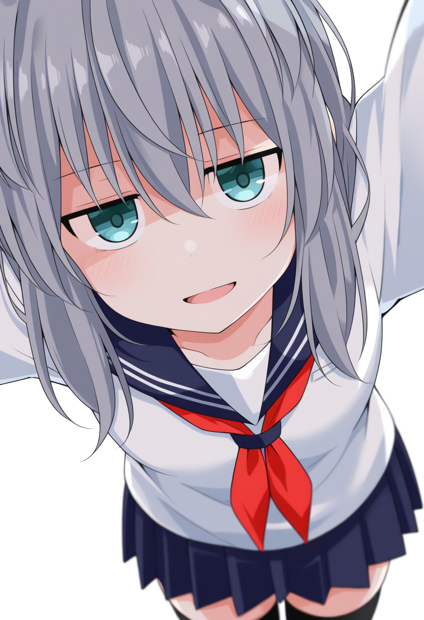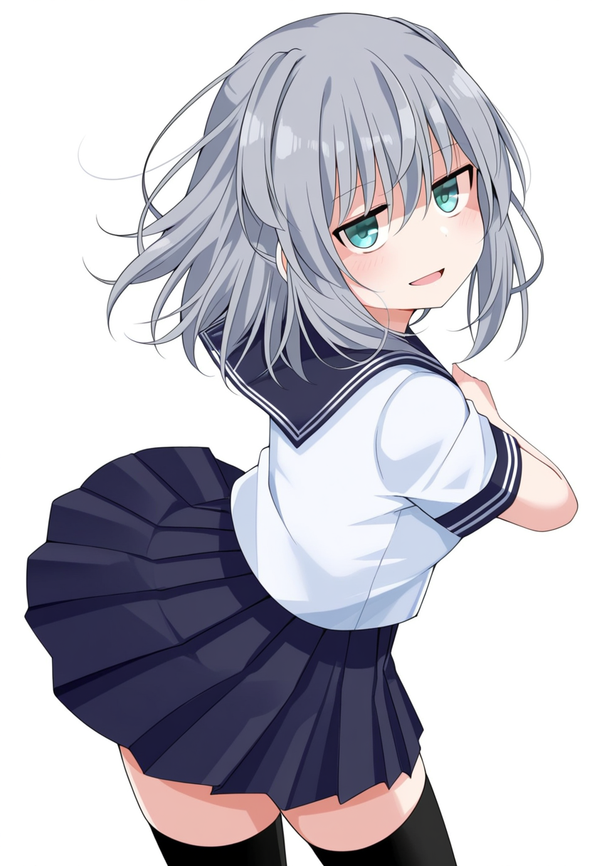 serafuku, school uniform, pleated skirt, ,zettai ryouiki, black thighhighs,