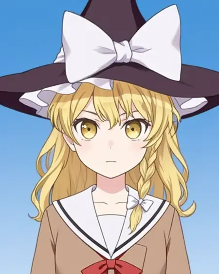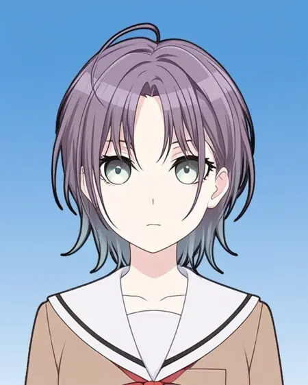 프롬프트: 1girl, looking at viewer, upper body, straight-on, hanasakigawa school uniform, blue background