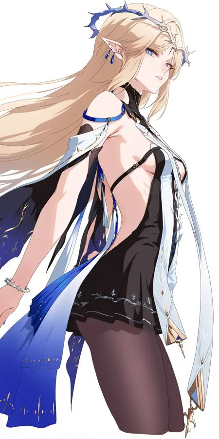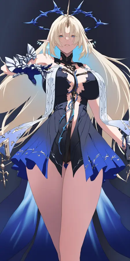 小卡(头部|面部特征):cartethyia\(wuthering waves\), spiked halo, blue earrings, braid