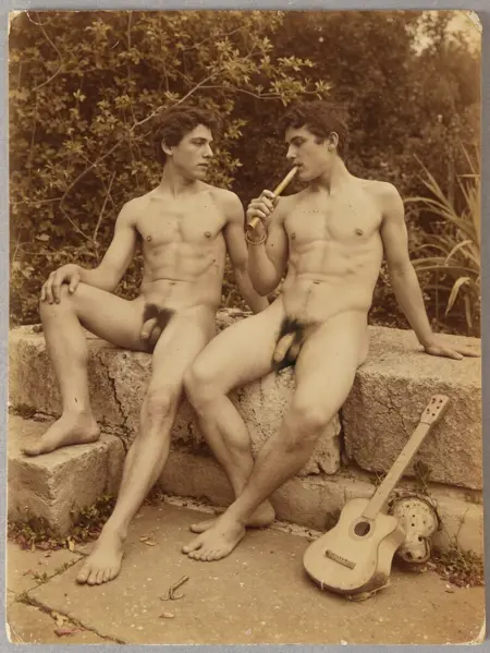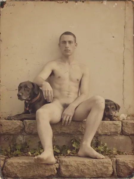19世紀の地中海の同性愛的写真の美意識を強調し、ヴィルヘルム・フォン・グローデン、ヴィルヘルム・プルシュウ、ヴィンチェンツォ・ガルディの例に見られるネオクラシカルな同性愛的伝統を中心に据える。これはセピア調の色調、褪せたディテール、古びたプリントに特徴的な物理的な劣化を強調する。このビジュアル・ランゲージは、テクスチャーのあるカードに貼られ、装飾的な縁取りと手書きの注記が施され、しわ、水染み、化学的変色といった老化の跡が見える、ヴィンテージのポストカードの形式的な厳格さと独特な魅力を再利用する。