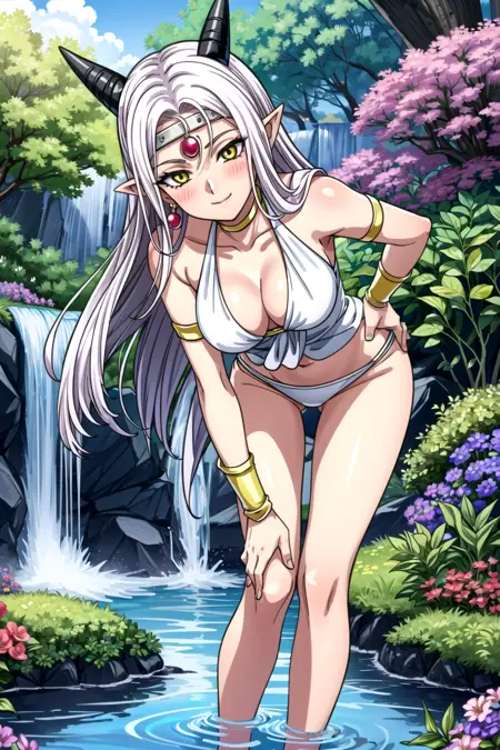 ・DQ10 estella(long hair, purple hair, yellow eyes, pointy ears, horns, circlet, earrings, choker, )
