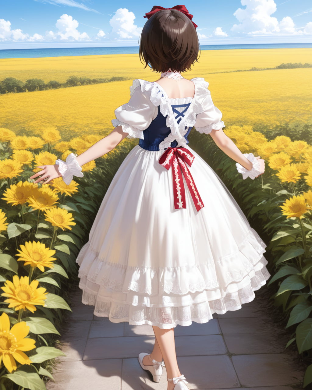 This is my first LORA for lolita dresses! The dress itself might look ordinary on its own, but when paired with a big bow hairband and a short-haired girl, it magically brings the Snow White imagery to life.
