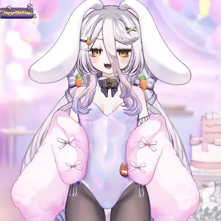 Henya, long hair, rabbit ears,leotard, BUNNY SUIT, holographic fabric, black tights