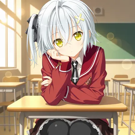 Hotaru Rinne,white hair,x hair ornament,one side up,hair ribbon,black ribbon,