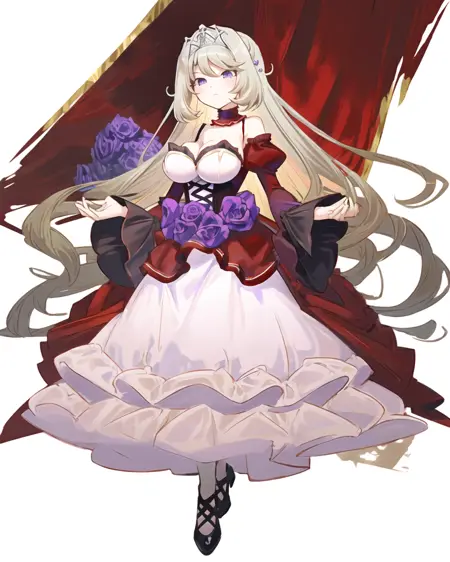 KarenH,王冠,露胸,大乳房,红色连衣裙,茱丽叶袖,项圈