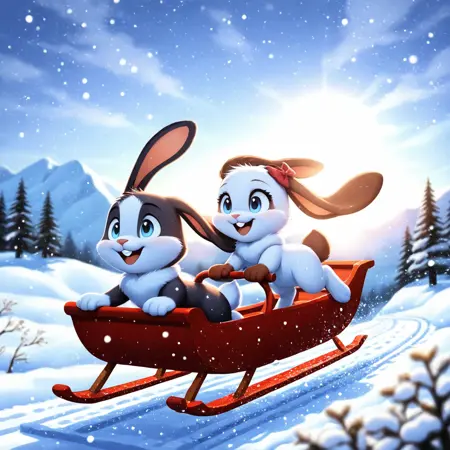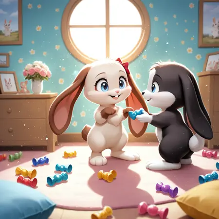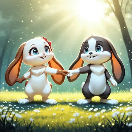 Schnuffel and Snuggelina bunny in 2D