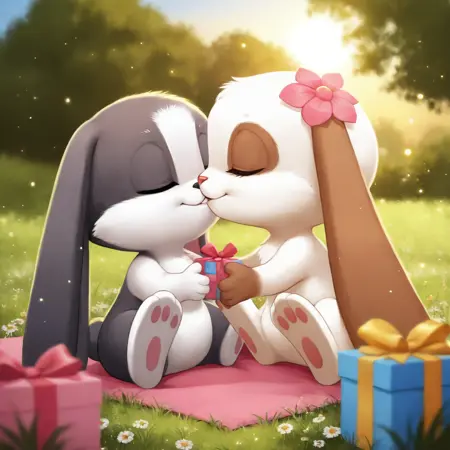 duo, cub, bunny, 1boy, 1girl, Schnuffel, Snuggelina, lop-eared, blue eyes