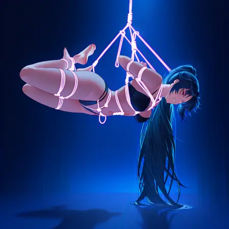 可选提示词:昏暗照明,暗色场景,发光绳索