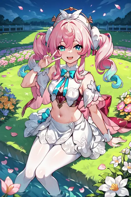 To generate, I usually use: hyacine, twintails, gradient hair, pink hair, aqua hair, aqua eyes