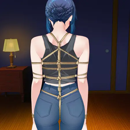 此LoRa旨在生成一幅主体双手被绑在身体两侧并略微向后固定、同时身体也被捆绑的图像。还有一种称为“蜻蜓绑具”的捆绑方式,仅束缚主体的双臂,而不捆绑身体。此LoRa也能生成此类图像,但效果不够稳定。如果社区对此类捆绑方式有兴趣,我可能会尝试制作一个。