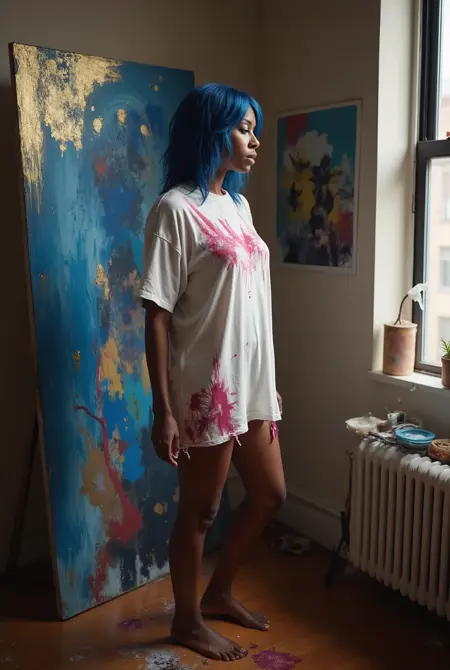 她的公寓,位于Bed-Stuy的一间小阁楼,是她的避难所。这里堆满了速写本、数位板、水晶、老式相机和半融化的蜡烛。在这里,她正一点一滴、一页一帧地构建她真正的未来——她正在创作一部图像小说,将非洲散居神祇与韩国民间传说融合,设定在一个被记忆与神话撕裂的未来。她希望创造视觉故事,让像她这样的女孩不再是配角——她们是神明、叛逆者、宇宙的缔造者。