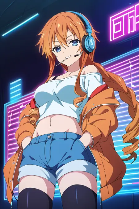 생성할 때 저는 일반적으로 다음을 사용합니다: yuzuru, 긴 머리, 땋은 머리, 더블 드릴, 드릴 헤어, 앞머리, 주황색 머리, 파란 눈