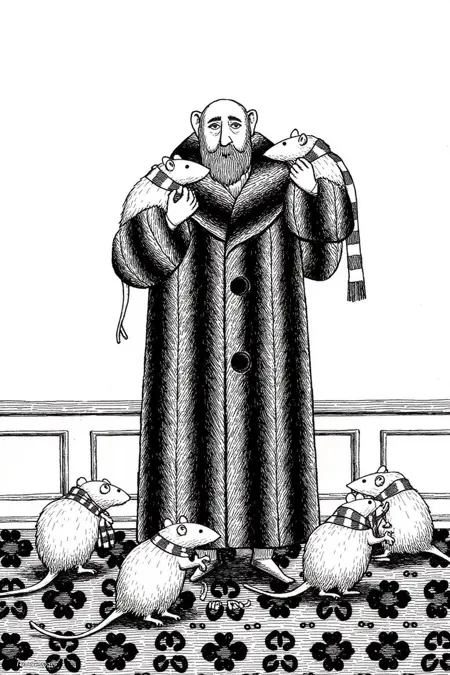 • 自ら「隠遁者」と称していた彼は、猫、ファーのコート、古書の愛好家として知られている。