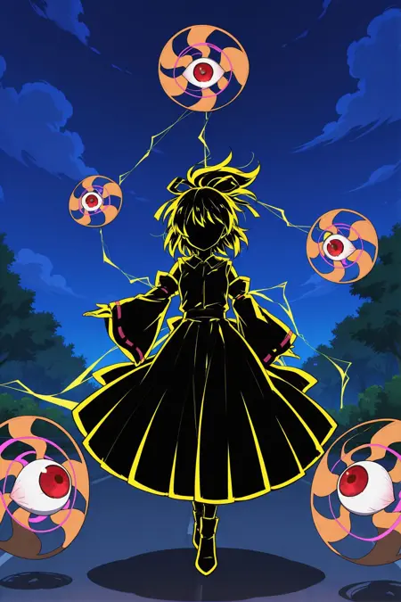 yuugenmagan, 1girl, long hair,, outline, electricity, shadow, detached sleeves,