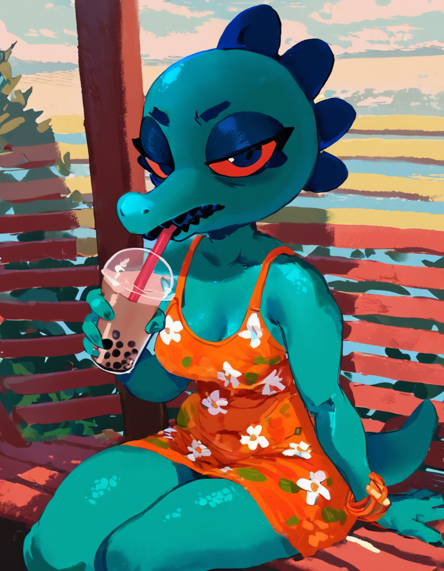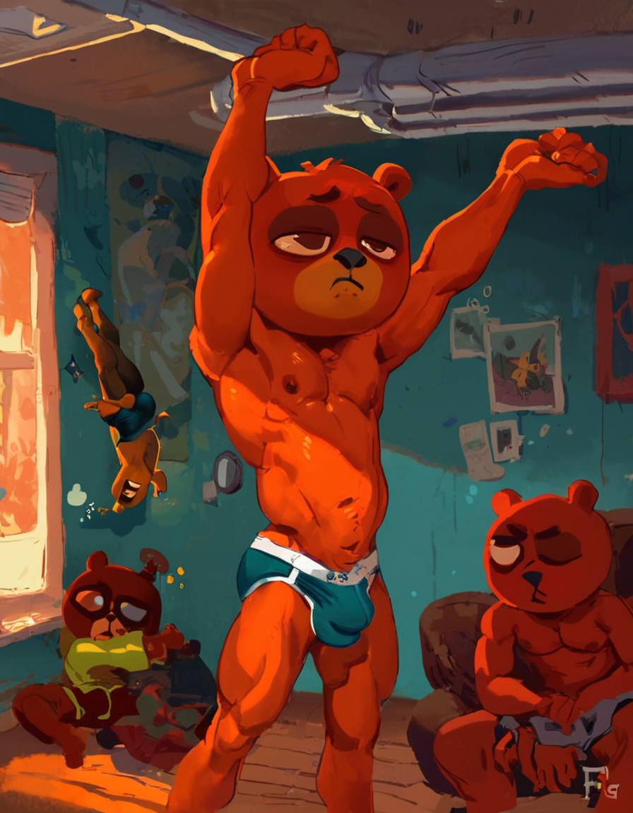 "나이트 인 더 우즈" 이미지로 주로 학습됨: (캐릭터 이름을 명시하지 않고, 단순히 스케일리, 어비언, 펠린, 캐닌, 베어)