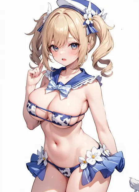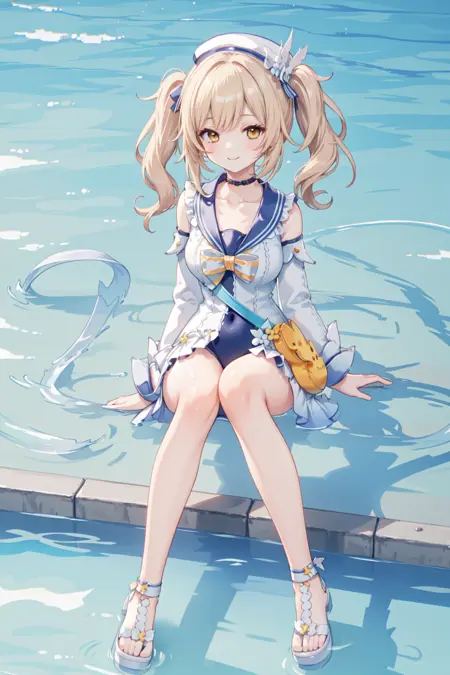 또한 바바라(서머타임 스파클)(원신)의 캐릭터 로라로 사용할 수 있습니다: 금발, 투트레일, 투드릴, 중간 길이 머리, 파란 눈