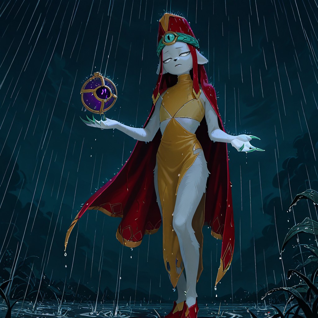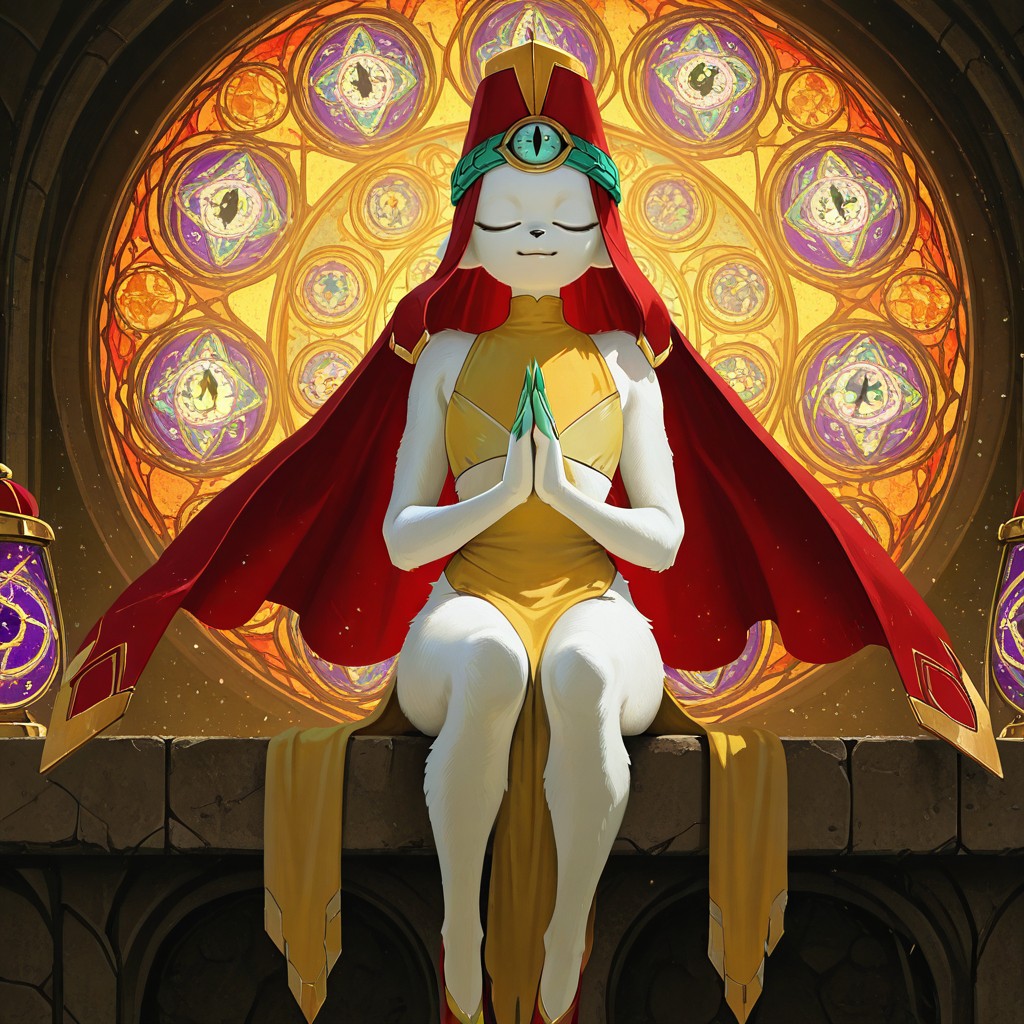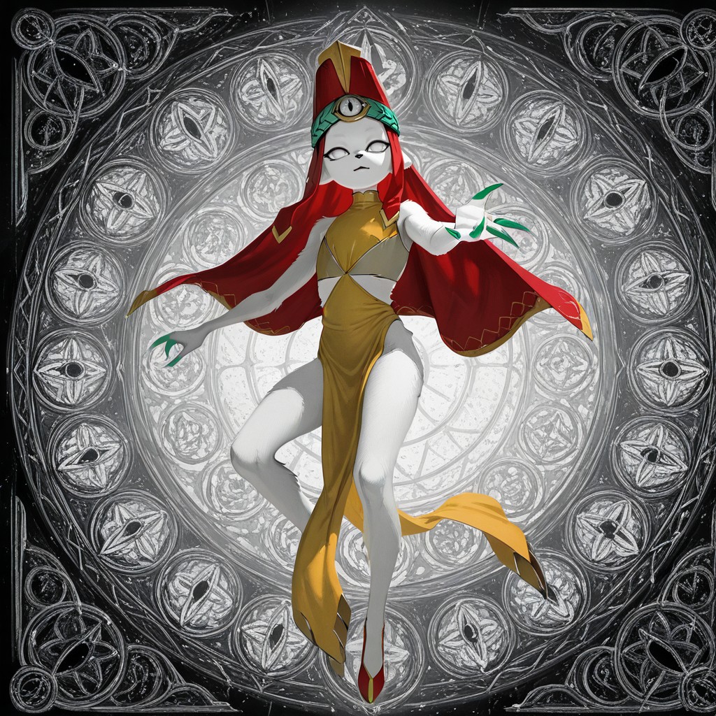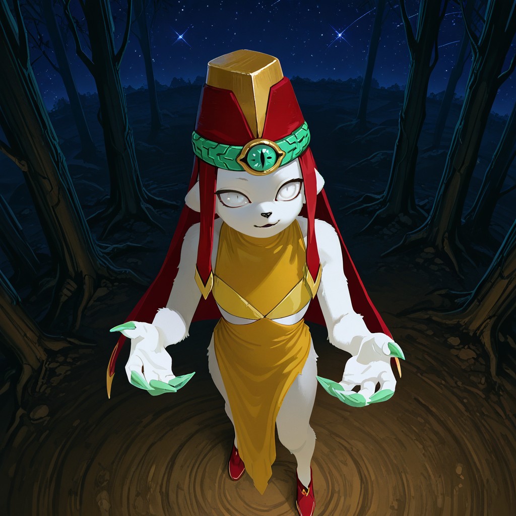 male, furry male, solo, white fur, white eyes, no pupils, black nose, small ears, green claws, skinny