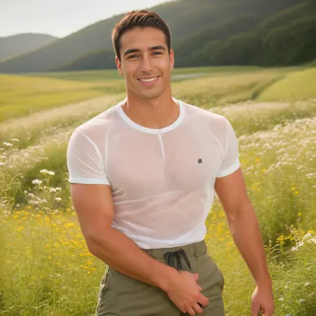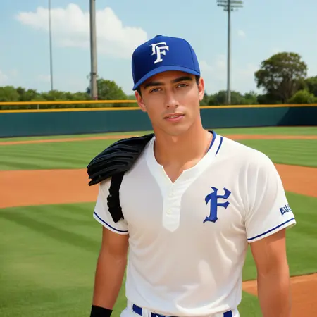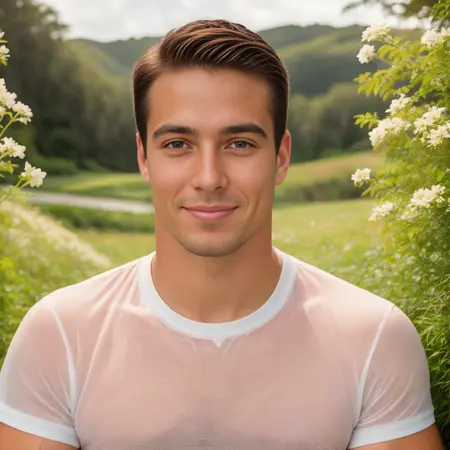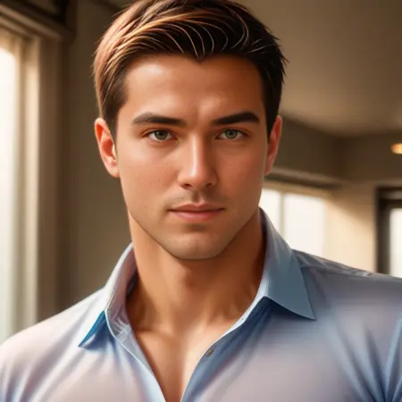 一个由完全AI生成的数据集创建的虚构男性学生角色。应生成一位肌肉发达、皮肤非常光滑的22岁青年。