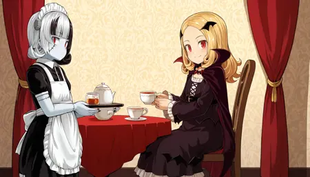 Lud14,吸血鬼女孩,长发,金发,红眼,蝙蝠发饰,哥特风,斗篷