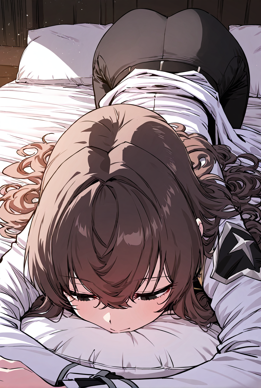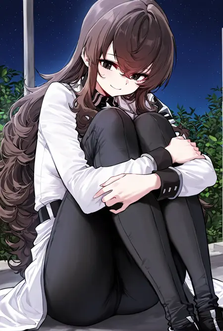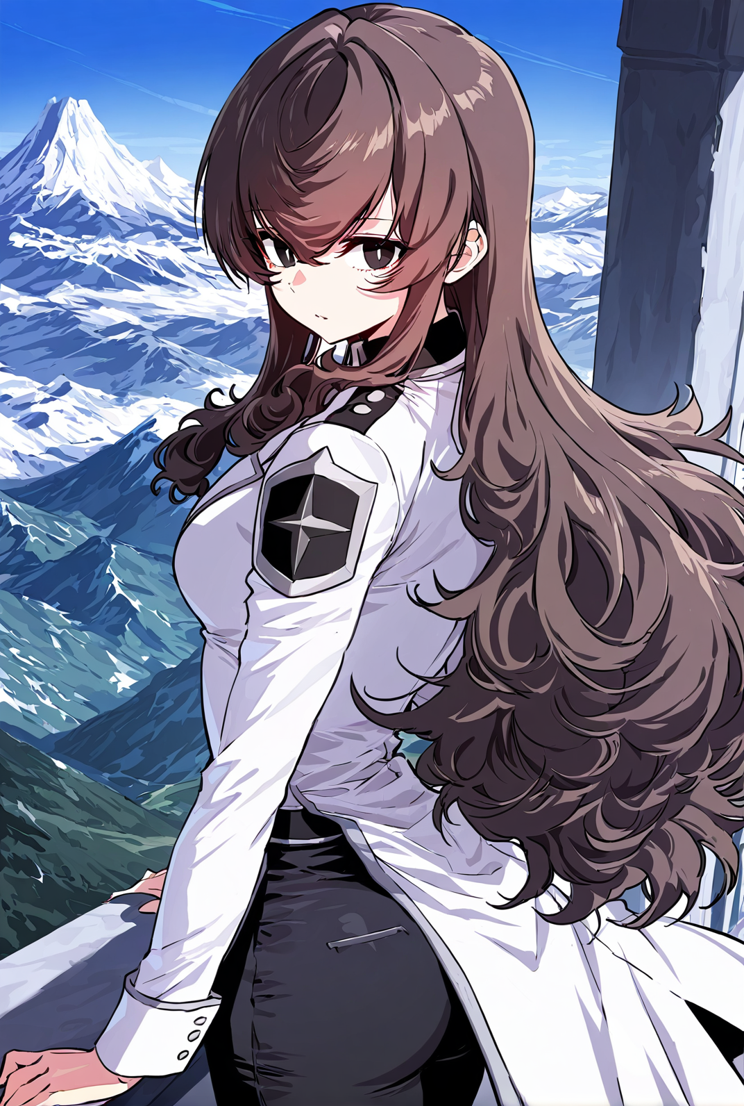 1girl, solo, long hair, wavy hair, thick bangs, brown hair, full bangs, black eyes,
