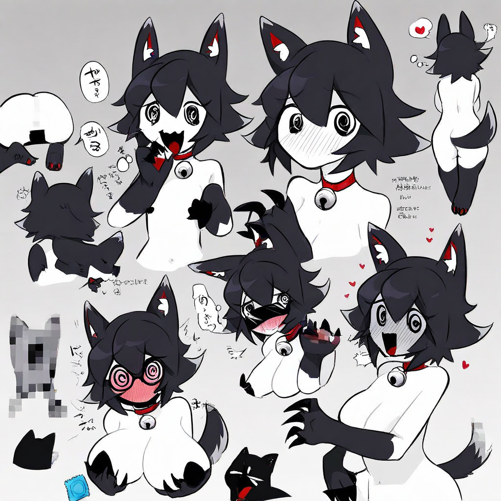 c3rb3rus, wolf girl, black hair, white skin, black tail, elbow gloves, white hair tips