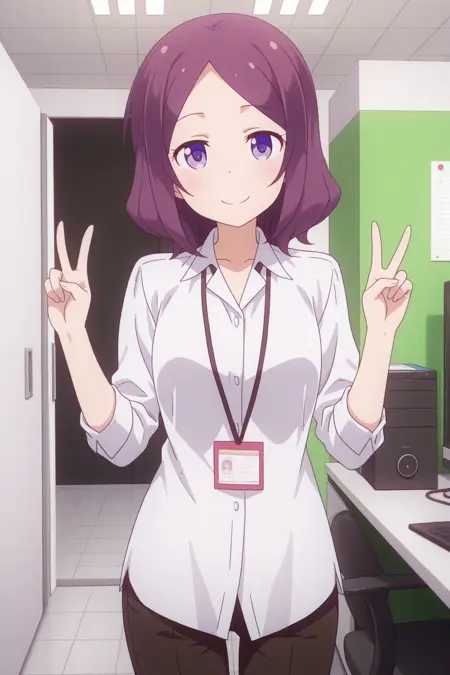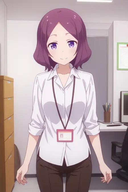 aarin, 紫色眼睛, 紫色头发, rinc2, 白色衬衫, 黑色长裤,