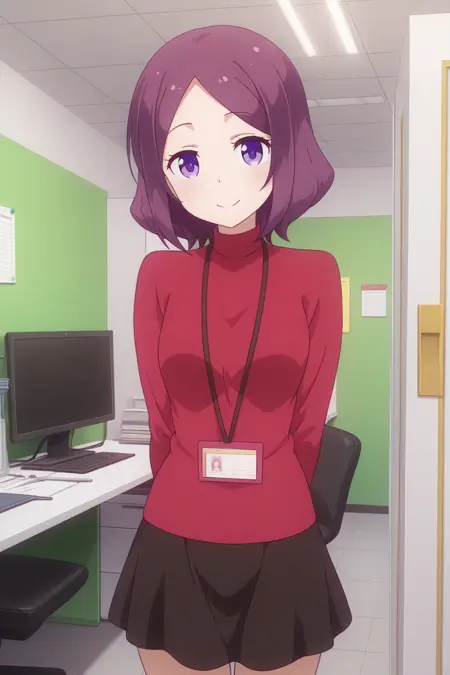 aarin, 紫色眼睛, 紫色头发, rinc3, 红色毛衣, 高领, 黑色裙子,