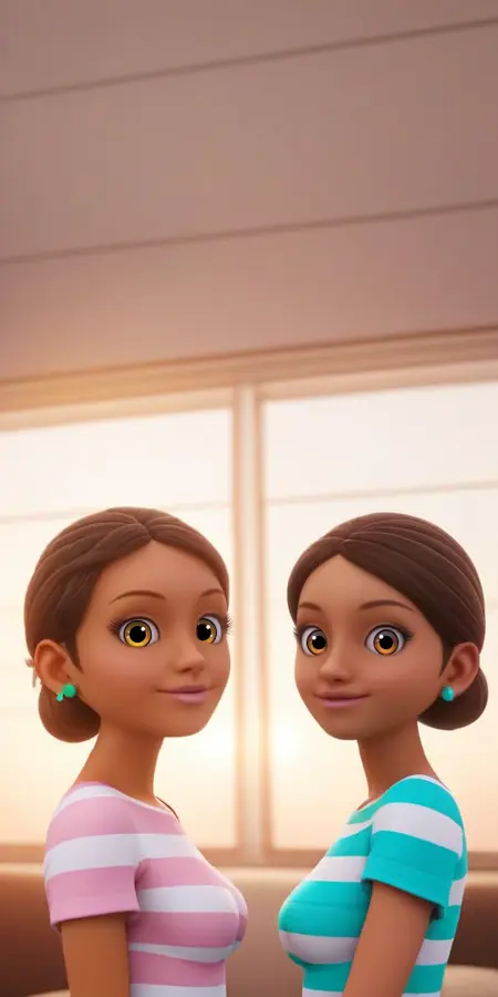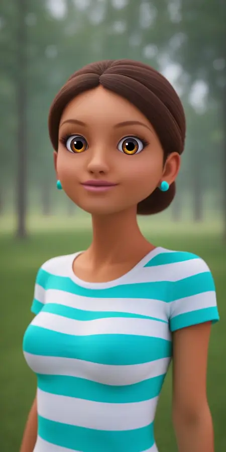 엘라 세사르 캐릭터를 생성하려면 다음 명령어를 사용하세요: 1girl, pink earrings, light sea green and white-striped t-shirt.