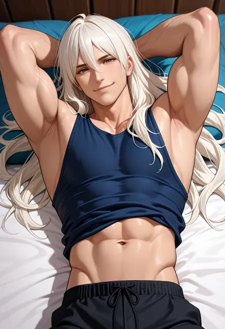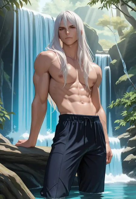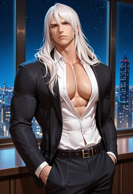 LAKadan, 1boy, male focus, white hair, long hair, brown eyes