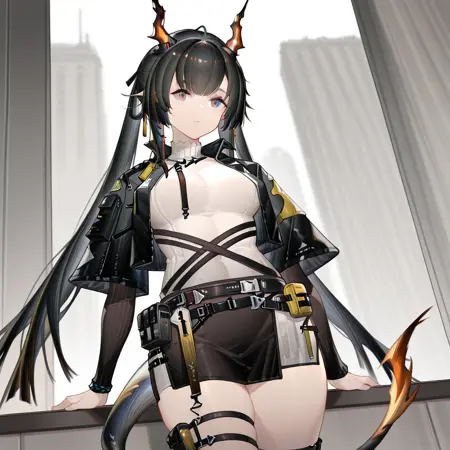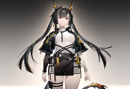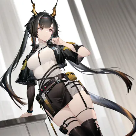 chen_qianyu_concept_\(arknights\), black skirt, black miniskirt,