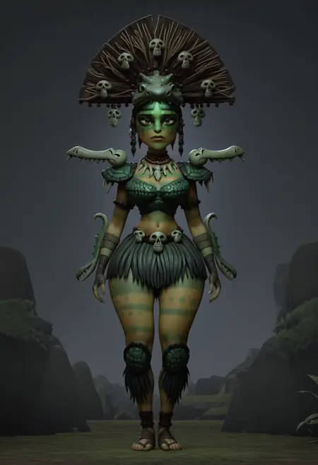 She is the Goddess of Alligators. She appears in the 2021 cartoon Maya and the Three.