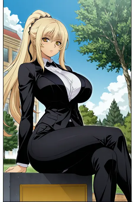official style, sharp, intricate details, hyperdetailed, ultra-detailed, detailed, excellent Quality, excellent Details, excellent Anatomy, masterpiece, Epic, high definition, 8k, perfect lighting, Cassandra_XL, ponytail, hair ribbon,