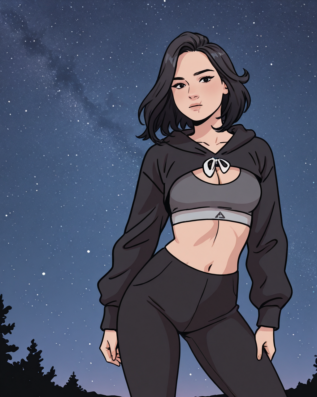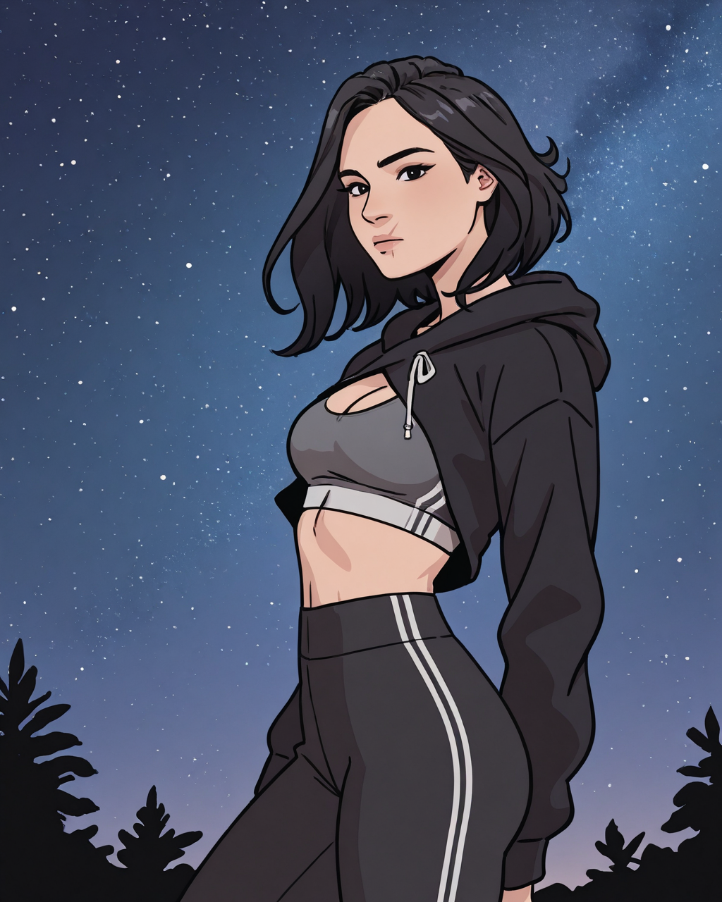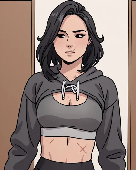 Triggers: michellela, 1girl, black hair, medium hair, black eyes, scar on face