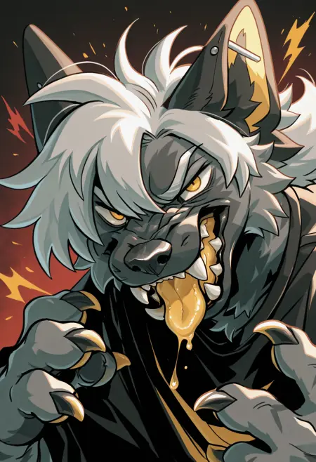 Illustrious: best quality, amazing quality, very aesthetic, absurdres, newest, epsilon_axontatsu_oc, furry male, furry, 1boy, solo, shirt, yellow eyes