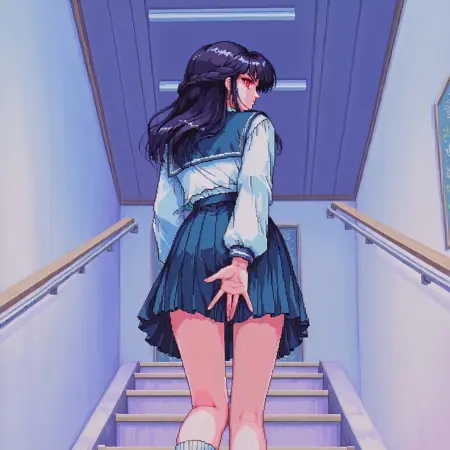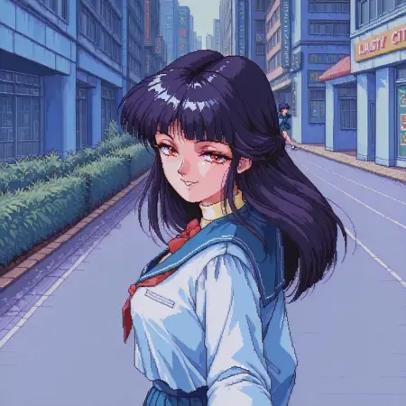 트리거 단어 및 추천 프롬프트: SaekoTKIL, school_uniform, retro_artstyle, red eyes,