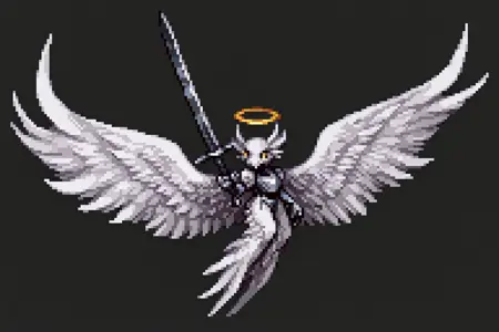 在您的提示词后添加我的触发词: masterpiece, pixpix, 8-bit, pixel_art