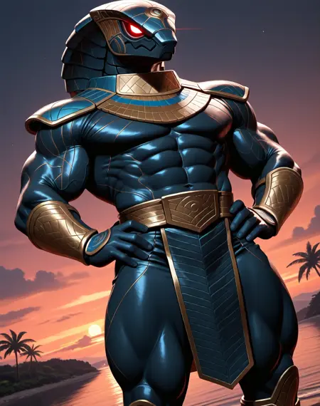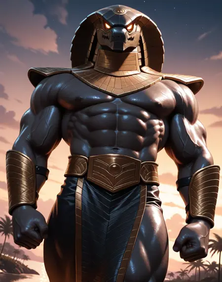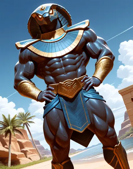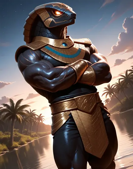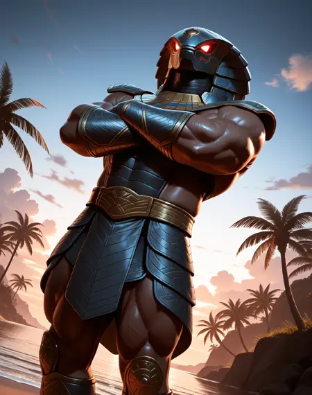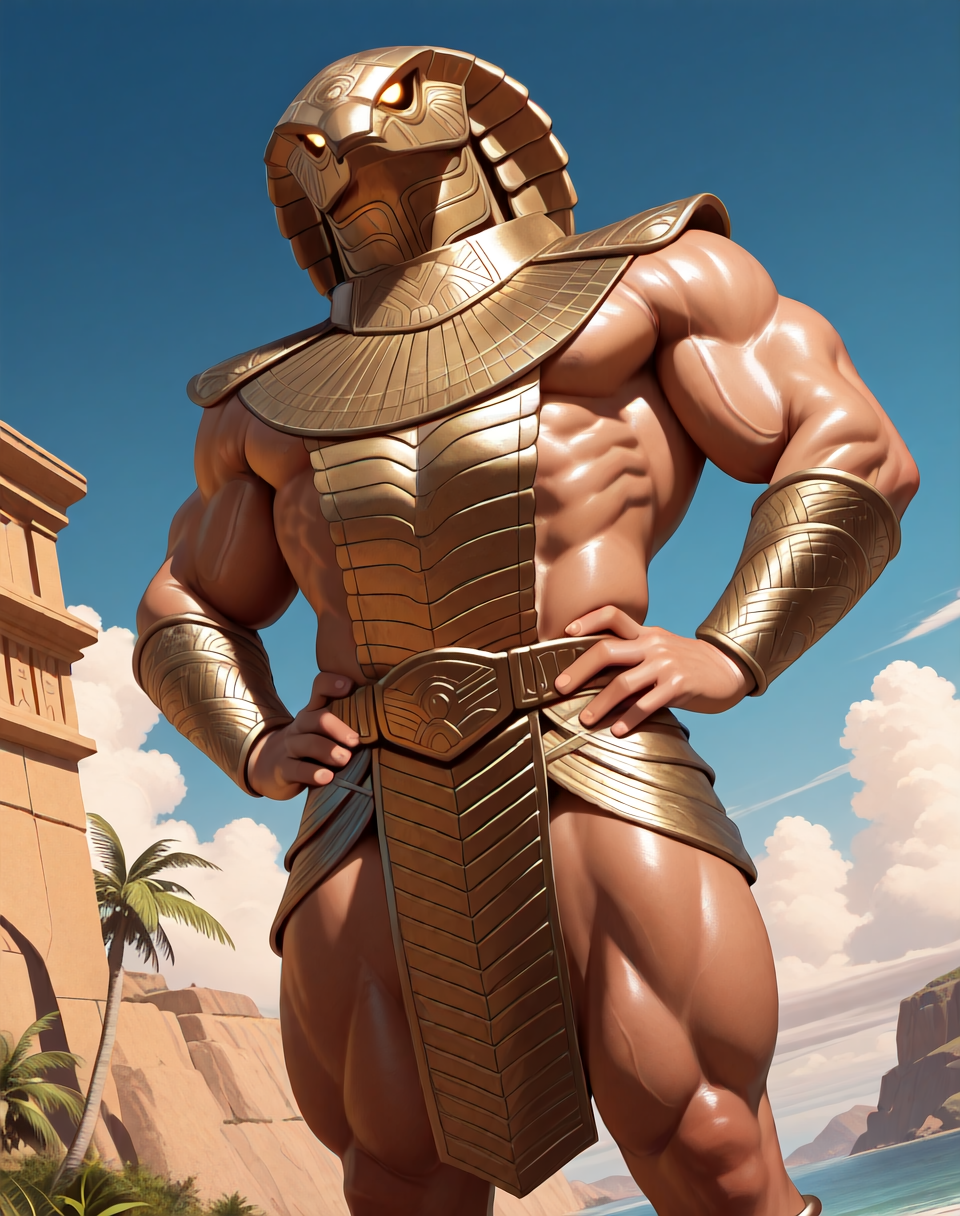 このLoRA用のプロンプトは以下の通りです:(Apothis Jaffa, muscular, Stargate, )