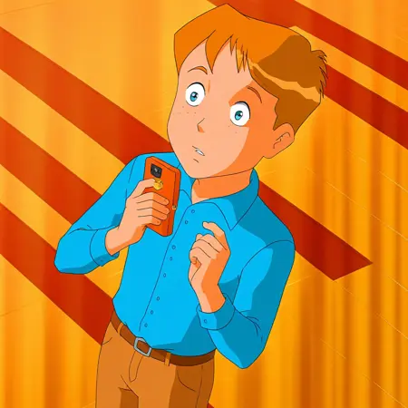 embedding:Pony\Positive\zPDXL3, masterpiece, best quality, good quality, male focus, jason_hightower_totally_spies, solo, aged up, 18 years old, 1boy, mature male, mature man's body, male focus, dutch angle, high resolution, slim body, outdoors, park, blue crossbody bag, holding cellphone, smart band, large head, wide head, short hair, reddish-orange hair, reddish-orange eyebrows, blue eyes, reddish-orange sideburns, reddish-orange thin goatee, casual clothes, long sleeves, blue buttoned up shirt, brown length trousers