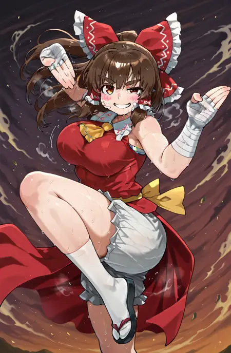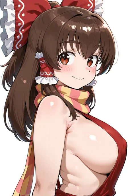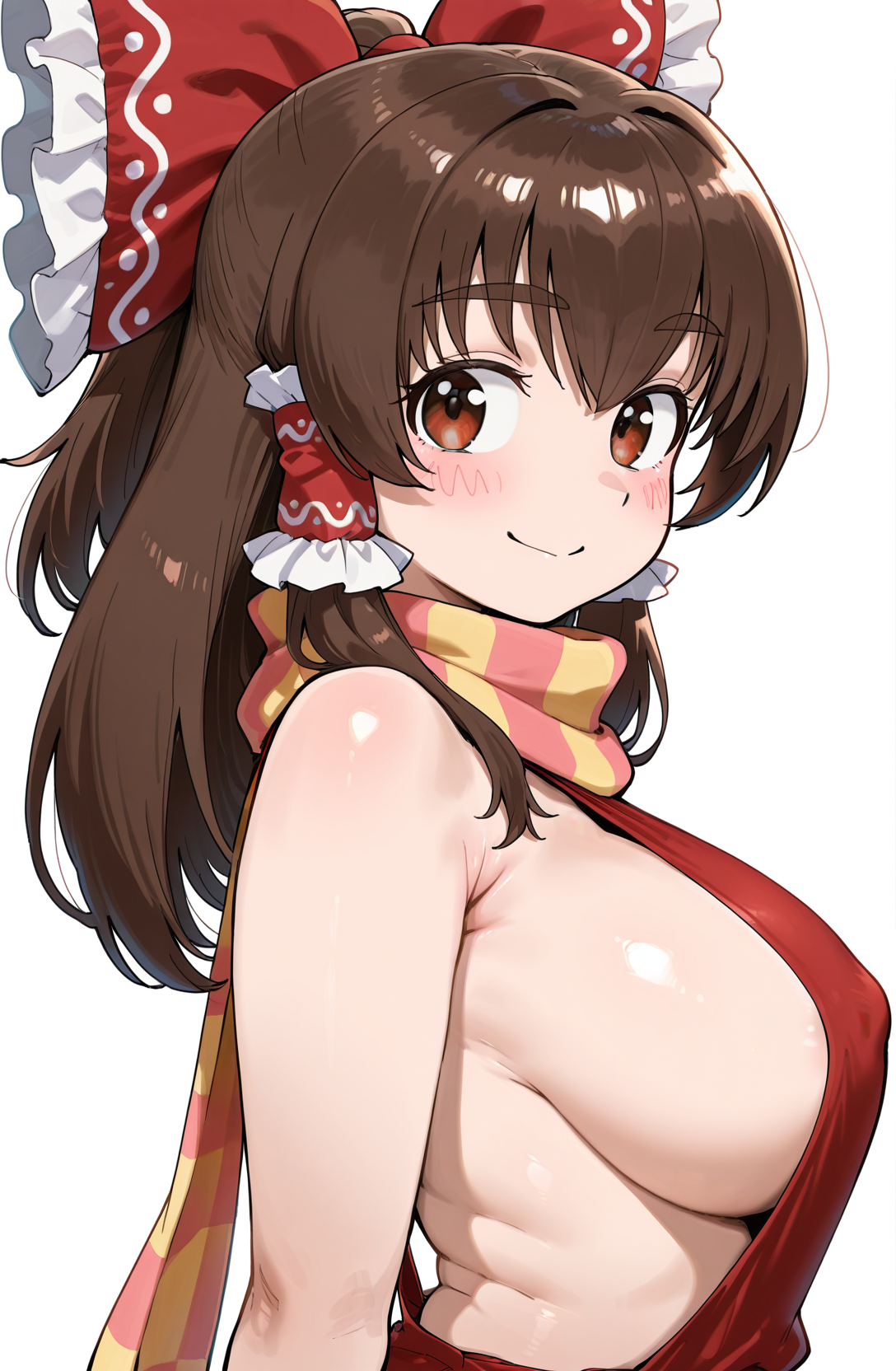 [ kanna \(cookie\), 갈색 머리, 측면 머리카락, 갈색 눈, 물결치는 뺨, 두꺼운 눈썹, 큰 가슴, 하쿠레이 레imu, 머리 리본, 빨간 리본, 머리 튜브, 주름진 리본, 머리에 가려진 눈썹 ]