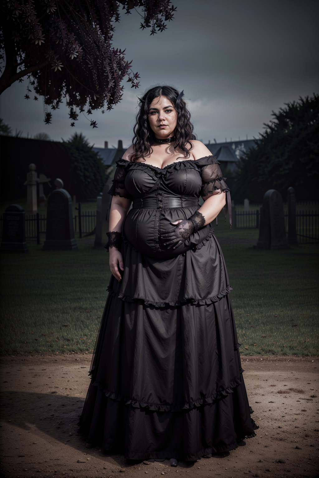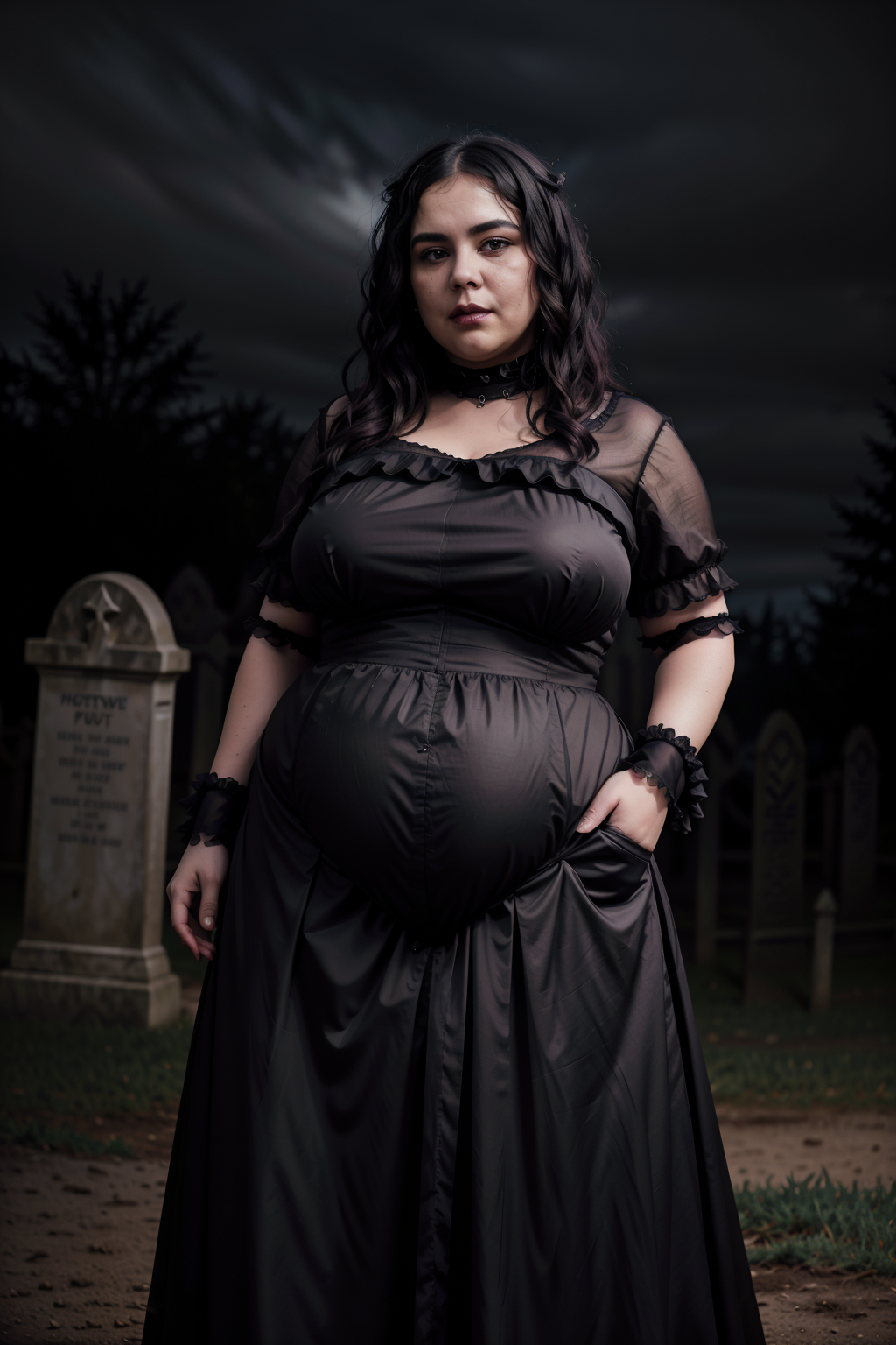 Eleanor and Astoria were born of being asked to make a couple of goth nobodies. I did two classic goth looks. This is the larger one. The training didn't leave her with much of her make-up, but she responds well to gothic make-up prompts. I lost some of the weight in the training, but "fat" works really well.