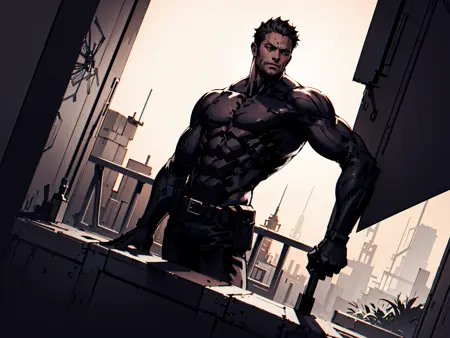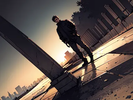 (masterpiece), (best quality), (high resolution),dutch angle,hyper detailed, solo, man, noir ,detailed_background, landscape,