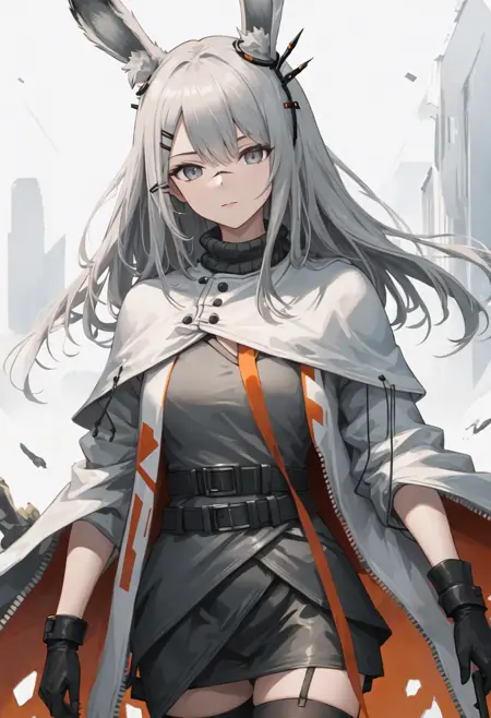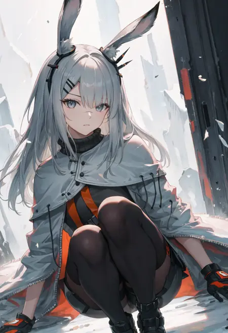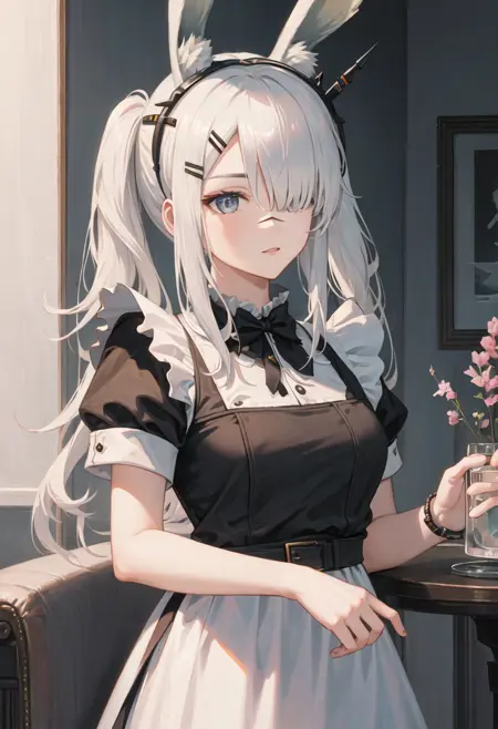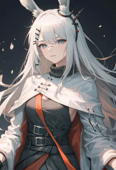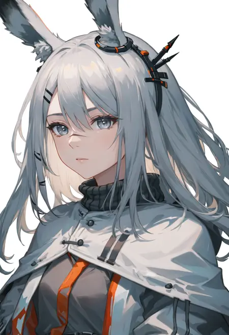 - 经过修剪的角色标签为:animal_ears, rabbit_ears, hair_ornament, long_hair, hairclip, scar_on_face, hair_over_one_eye, grey_eyes, grey_hair, white_hair, bangs。当角色的核心特征(例如发色)不够稳定时,您可以在提示词中添加这些标签。