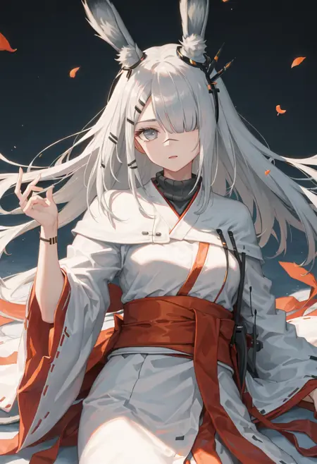 - 削除されたキャラクタータグは以下の通りです:animal_ears、rabbit_ears、hair_ornament、long_hair、hairclip、scar_on_face、hair_over_one_eye、grey_eyes、grey_hair、white_hair、bangs。キャラクターのコアな特徴(例:髪の色)が安定しない場合、これらのタグをプロンプトに追加してください。