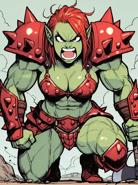 (注:建议使用 "colored skin, grey skin",这契合大量训练数据。常呈现尖下巴特征。有时会生成多格图像,建议在负向提示中加入 "borderless panels, multiple views, segmented comic" 以避免。若背景过于简单,可将 "simple background" 加入负向提示,或直接描述你想要的背景即可。)