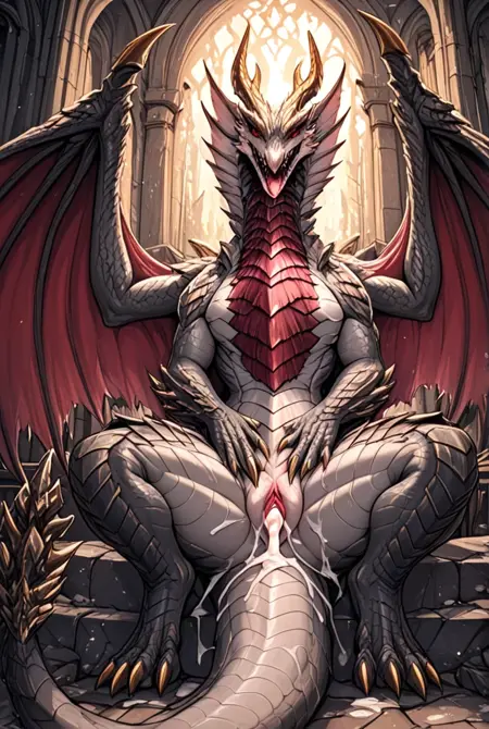 Malzeno, 빨간 눈, 뿔, 용 날개, 용 꼬리, 발톱, 비늘, 보라색 비늘, 흰색 비늘
