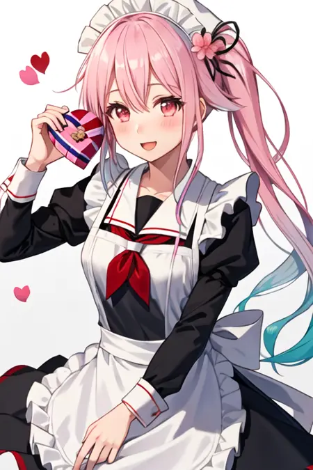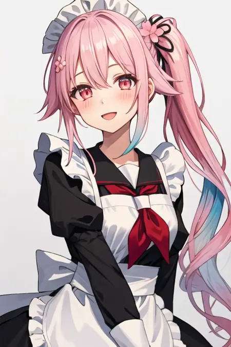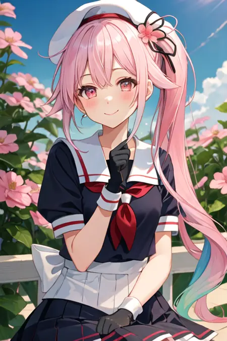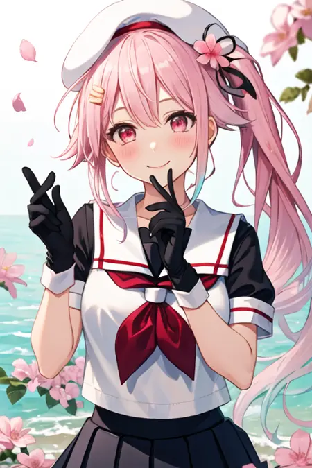 トリガー語はharusame_kantaicollectionで、推奨タグはbest quality, masterpiece, highres, solo, {harusame_kantaicollection:1.15}, pink_hair, side_ponytail, long_hair, blue_hair, pink_eyes, gradient_hair, multicolored_hair, ribbon, hair_ornament, hat, beret, serafuku, red_eyes, blush, flower, hair_flower, smile, hair_ribbonです。